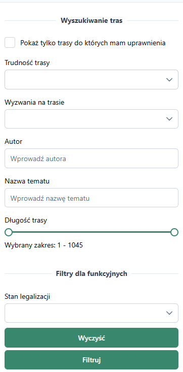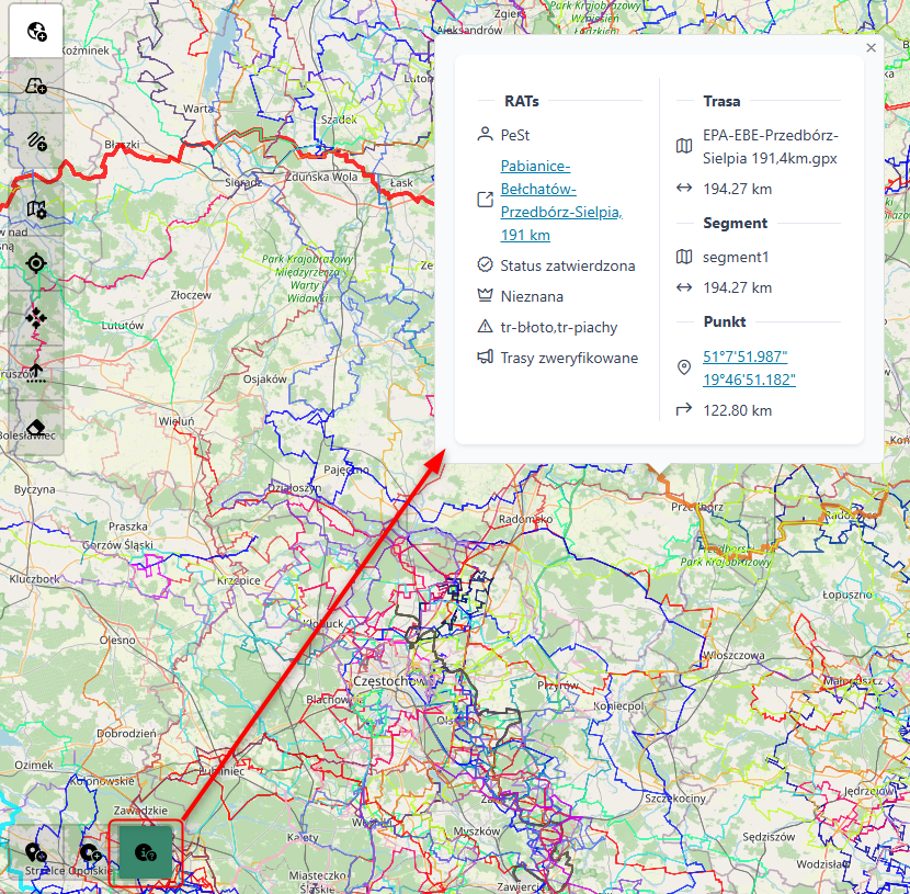 - Prawy panel boczny zawierający filtry dotyczące tras RATs